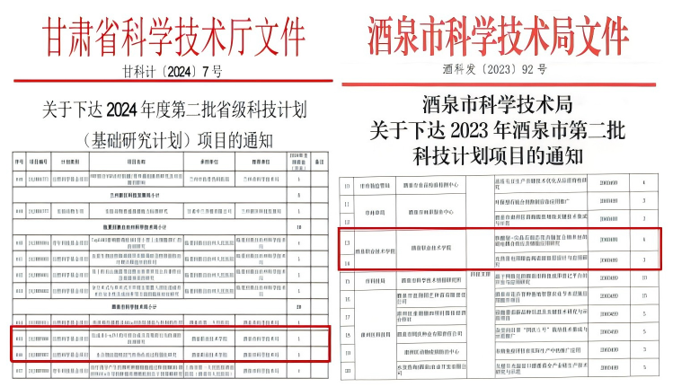 以平台支撑人才发展,以项目激发人才活力,以实践提升人才创新能力,今年以来,重点实验室团队成员1人被评为甘肃省领军人才,1人被评为甘肃省陇原青年英才,1人被聘为甘肃省科技专员,4人被评为酒泉市领军人才,4人被聘为酒泉市科技特派员,依托重点实验室支持,培养已毕业博士2名,在读博士4名。团队成员参与建设的新能源发电技术教师团队入选教育部第三批“全国高校黄大年式教师团队”,助力学校中国特色高水平高职学校和专业群建设计划项目顺利通过国家教育部验收,重点实验室人才培养效果逐渐显现,为“强科技”行动提供了有力保障。