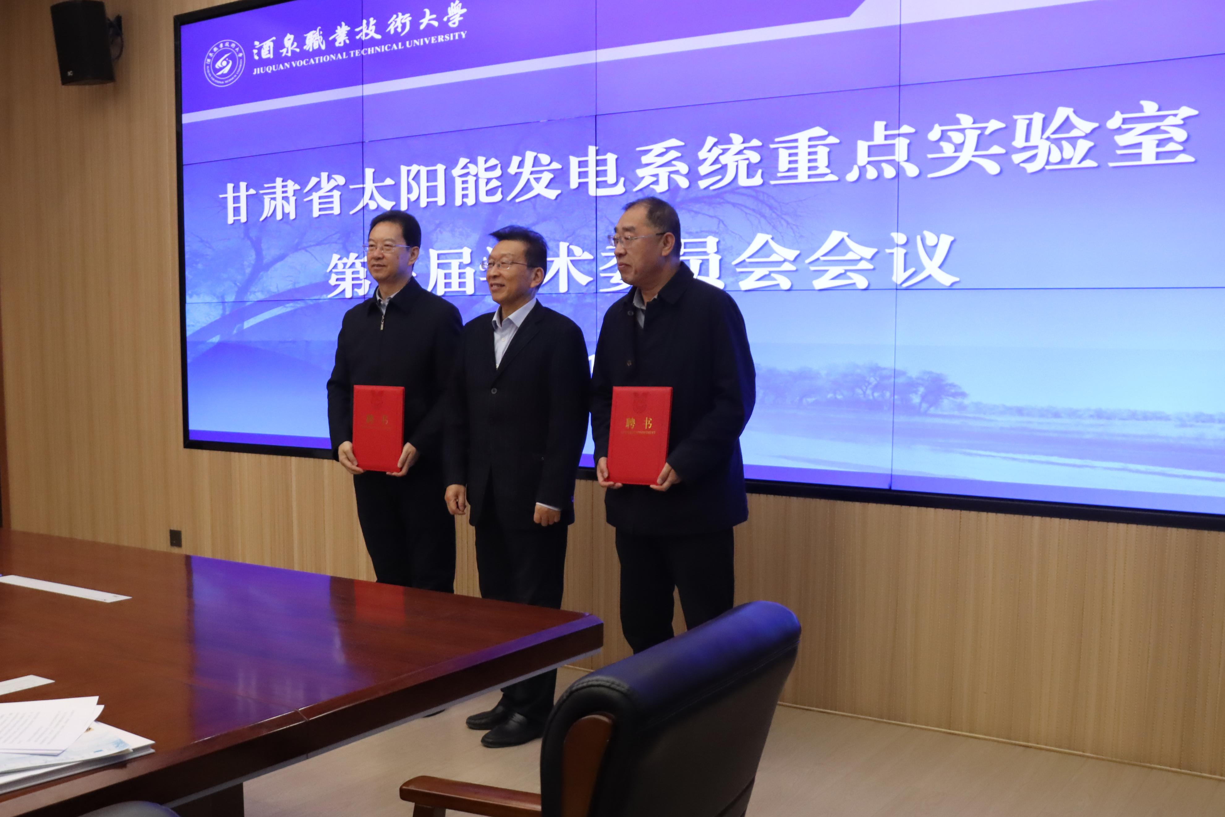 张运虎代表甘肃省科技厅宣读了《关于聘任甘肃省太阳能发电系统重点实验室主任与学术委员会主任的函》,并由易志军为学术委员会主任董海鹰教授、重点实验室主任许军教授颁发了聘书,标志着新一届学术委员会正式成立。